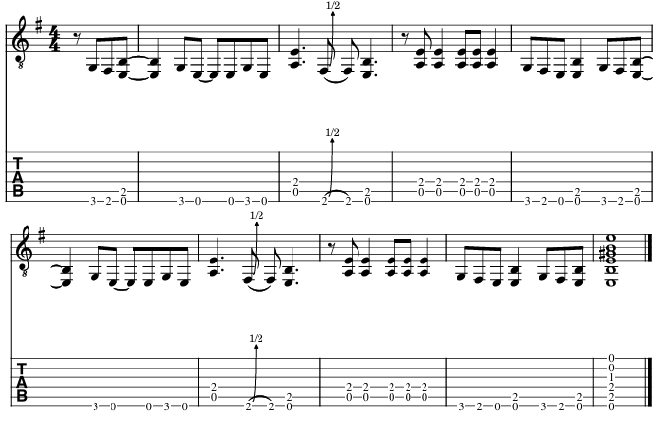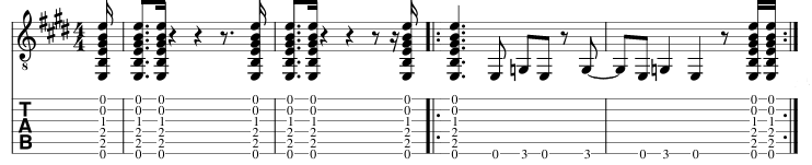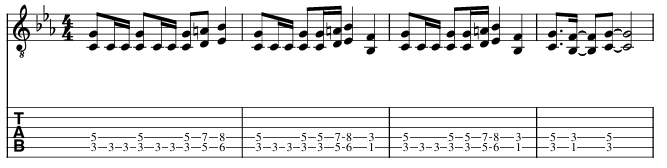 このリフも初心者にぴったりですが、曲に合わせて弾くとパワフルで、必要十分な「ロック感」をしっかりと演出してくれます。