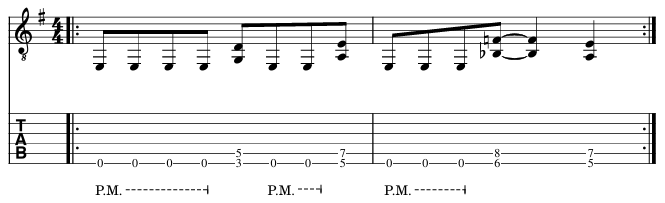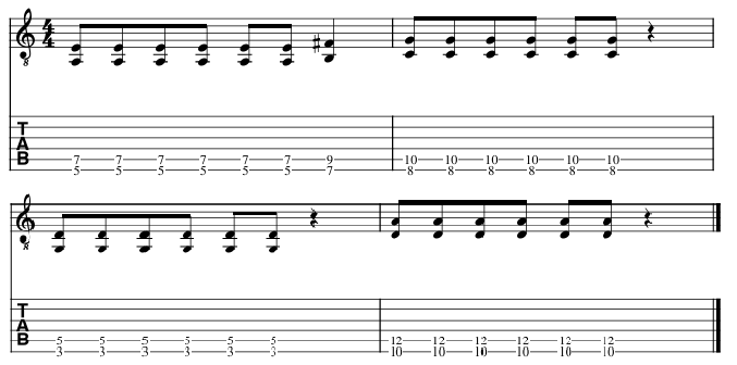 このリフをうまく弾くには、パームミュート、そして素早くパワーコードを移動する正確さが必要です。曲全体も良い挑戦になるので、勇気のある人は挑戦してみてください!